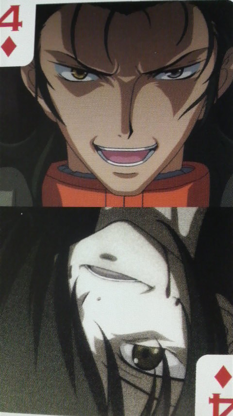ちなみにスペードが刹那、ハートがティエリア、クラブがロックオン、ダイヤがハレ・・・じゃねえ、アレルヤがメインで、JOKERがイオリア・シュヘンベルグと黒ハロでした。